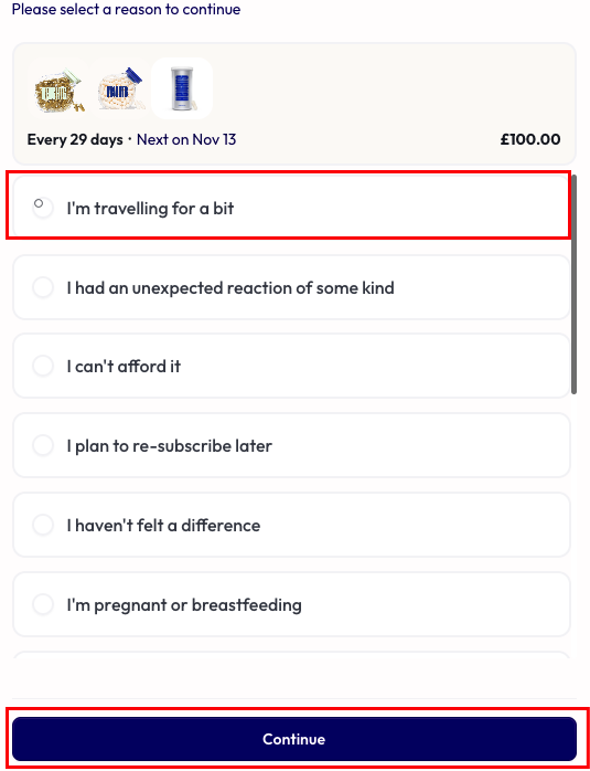 Based on your reason, you might be offered a tailored solution (e.g. delay or adjust your plan). You can: